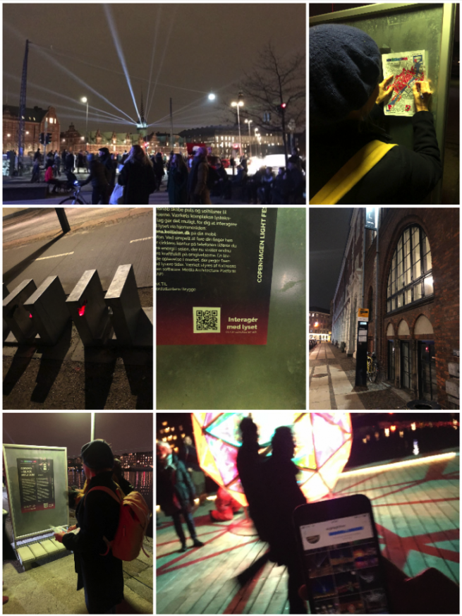 On Tuesday evening, the members of the DataPublic team ventured out on an Alison Powell inspired DataWalk in the streets of Copenhagen, which were currently inhabited by multiple light installations as part of the Copenhagen Light Festival. With an assigned navigator, photographer, note taker and map maker, the team set of to explore the datafication of the public spaces in central Copenhagen, but also inspired by the work on the 'politics of things' by Wendy Willems, the aim was to explore the ways in which public spaces or physical objects are remediated into online public spaces.