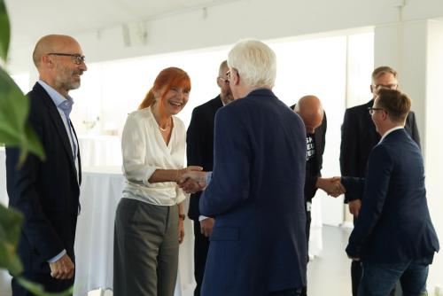 Rektor Hanne Leth Andersen tager imod uddannelses- og forskningsminister Christina Egelund. Foto: RUC.
