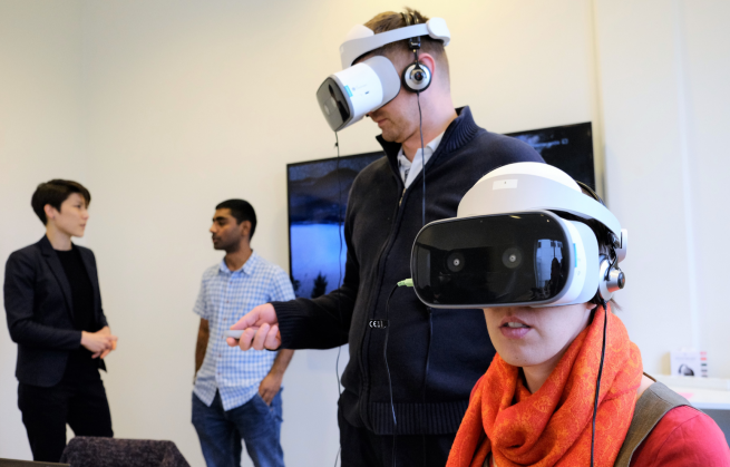 En østrigsk delegation bestående af repræsentanter fra universiteter, undervisningssektoren og virksomheder besøgte Center for Virtuelle Læringsteknologier for at blive klogere på, hvordan RUC forsker i og implementere VR i den naturvidenskabelige undervisning.